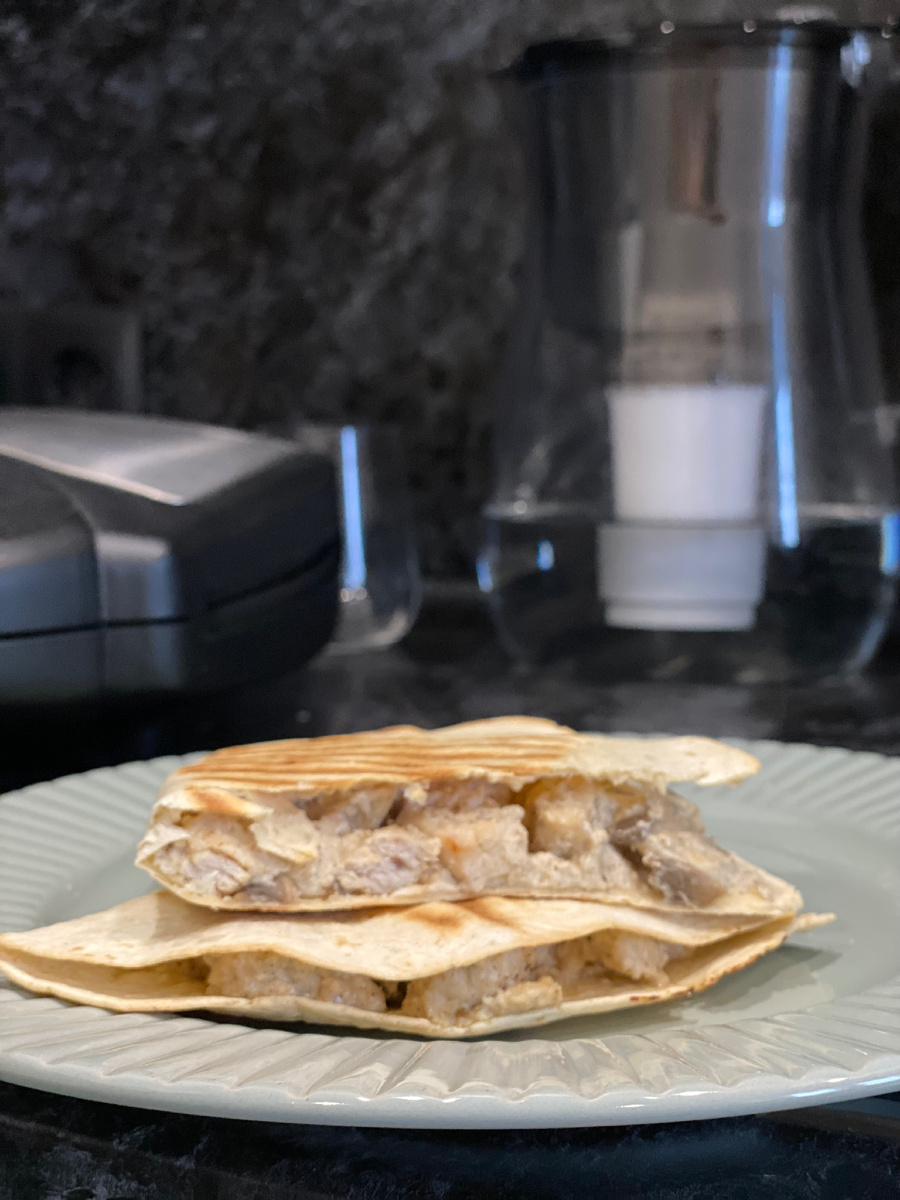 Было вкусно, так что ловите рецепт Кесадильи из индейки с сливочно-грибным соусом Стейки из индейки нарезать мелкими кубиками и обжарить на сухой сковороде, добавить шампиньоны. Добавить приправы. Я использовала: соль, смесь для пиццы и копченую паприку. Позднее добавляем тертый сыр (я использовала моцареллу) и 20% сливки. И добавить мускатный орех. Он придает очень интересный вкус. Доводим до готовности. Выкладываем на тортилью и обжариваем на гриле (уверена, что и на сковороде можно) до хрустящей корочки.