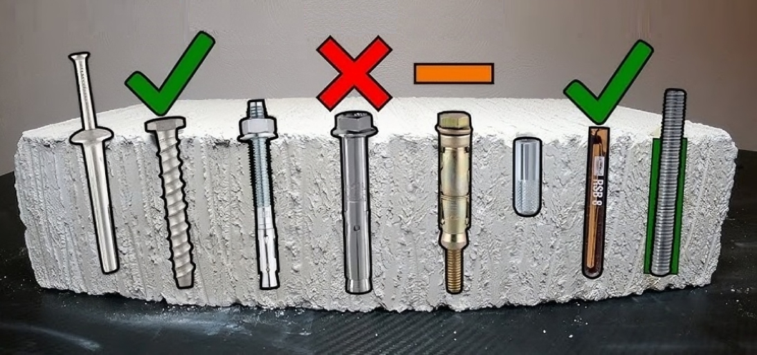 Химические анкеры актуальны для рыхлого бетона со множеством пустот. Установка в такие материалы распирающего анкера приведет к разрушению отверстия и слабой несущей способности. Клей из смолы и отвердителя наоборот заполняет все пустоты и укрепляет край отверстия, поэтому посадка металлического штифта плотная и надежная. Она превышает другие способы крепления по силе удерживания в 2.5 раза.