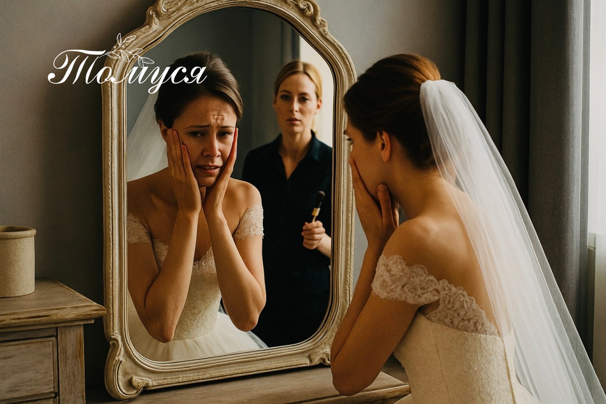 Я стояла перед зеркалом в свадебном платье, а мастер по макияжу замер с кистью в руке. В отражении видела, как осыпается вся моя уверенность, как рушится тот идеальный день, который планировала полгода.