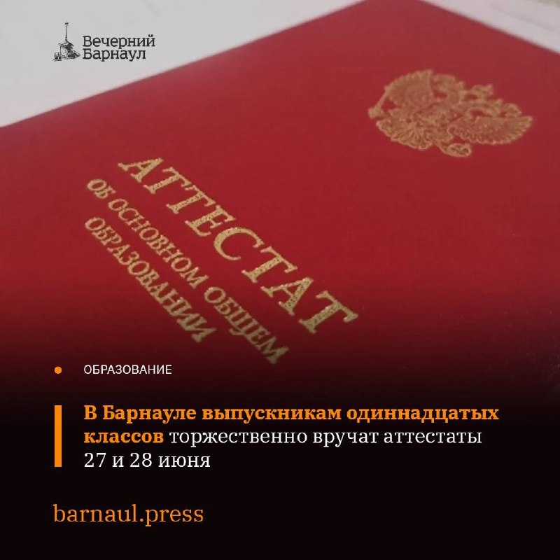В Барнауле состоялось совещание директоров школ, которое провёл председатель городского комитета по образованию Андрей Муль. В ходе рабочей встречи стало известно, что торжественное вручение аттестатов выпускникам одиннадцатых классов 2025 года состоится 27 и 28 июня. Для этого в Барнауле обеспечат высокую степень безопасности детей и соблюдение регламента проведения церемоний. 📌 О том, что ещё обсудили на совещании, читайте на нашем сайте. Фото: Екатерина Добринская / aif.ru @barnaul