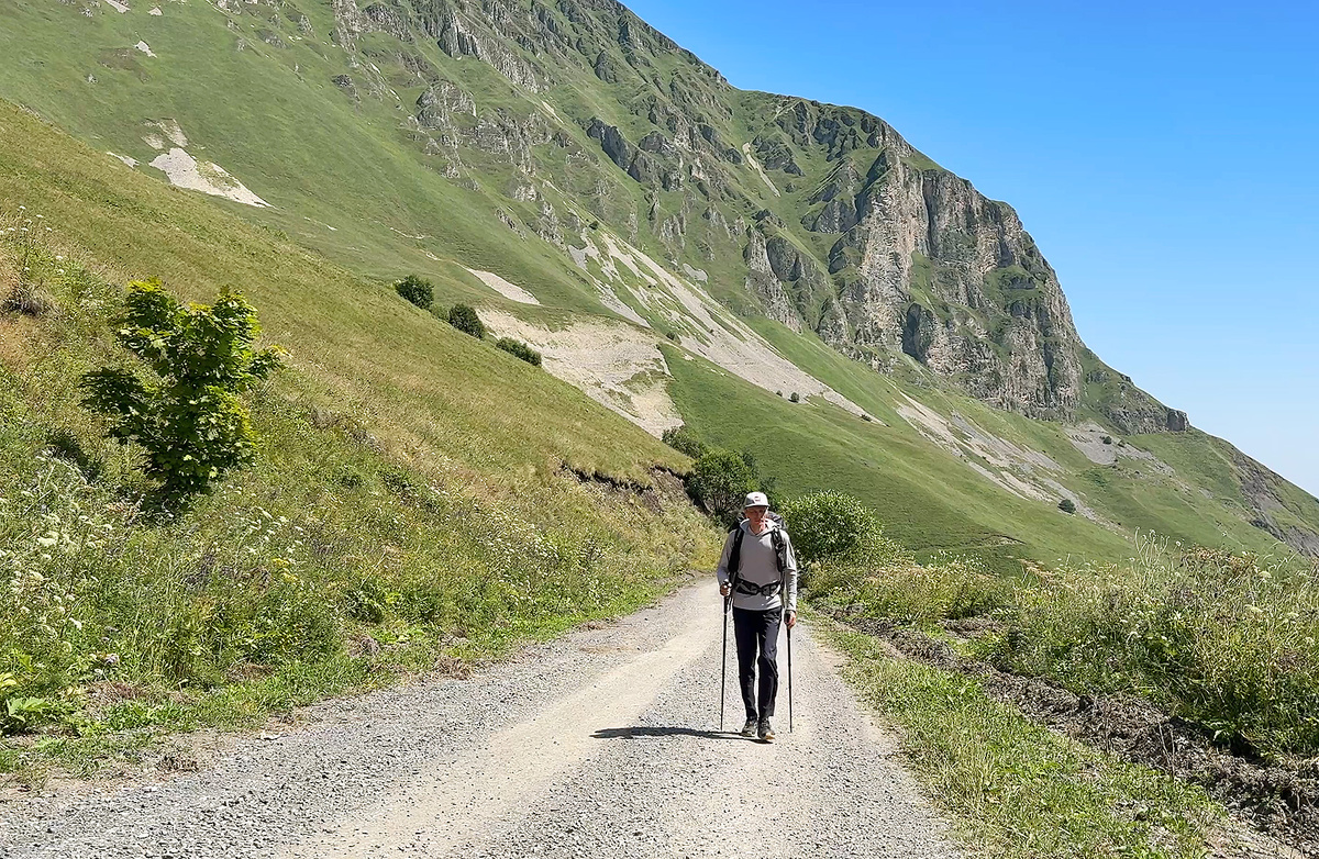 В Северной Осетии рельеф местности в очередной раз меняется. Горы становятся выше, подъёмы длиннее и круче. Снежники на вершинах видны уже совсем близко. От самого начала маршрута сложность пути увеличивается постепенно и позволяет адаптироваться организму к нарастающей нагрузке. К этому моменту я уже набрал хорошую форму и акклиматизацию.