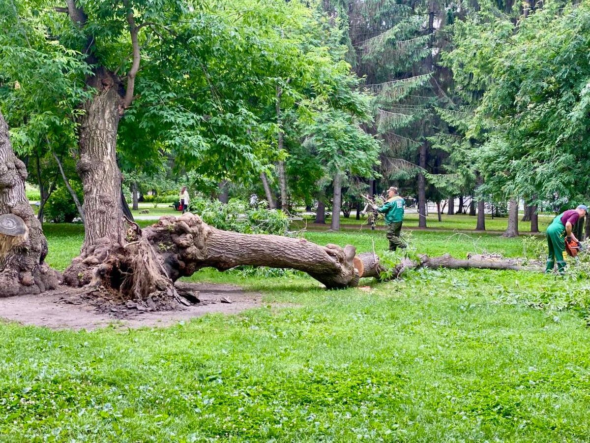 В Первомайском сквере рухнул огромный 90-летний клён после шторма в Новосибирске