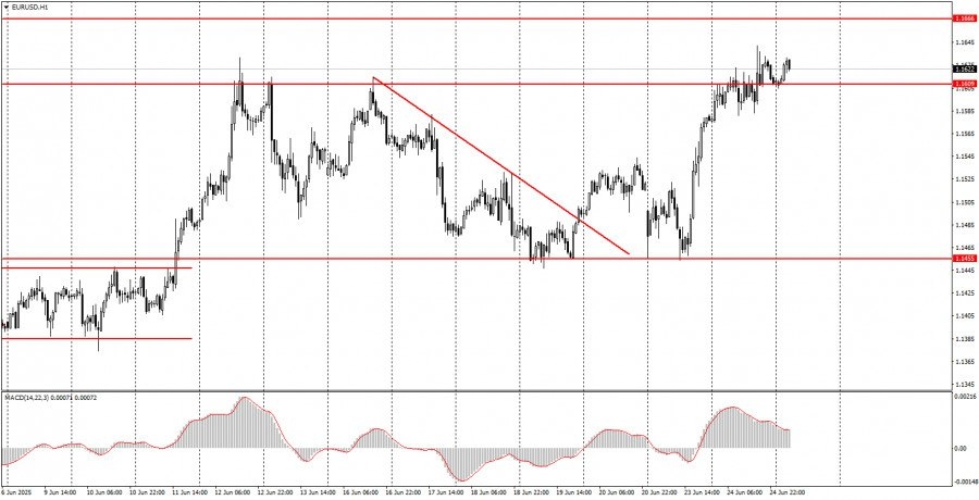 https://basechop.ru/wordpress/?p=47791 Разбор сделок вторника: 1Н график пары EUR/USD. Валютная пара EUR/USD во вторник в целом продолжала восходящее движение. На этот раз рынок стал свидетелем целого цирка в исполнении Дональда Трампа. Напомним, что вчера утром президент США объявил о завершении войны между Израилем и Ираном, а уже через несколько часов Тегеран запустил ракеты в сторону своего противника, чем спровоцировал тут же ответный удар. Все это время, пока Иерусалим и Тегеран продолжали обстреливать друг друга или готовится к новым атакам, Дональд Трамп пытался вновь урегулировать конфликт. Затем написал в собственной социальной сети о том, что он очень недоволен Израилем и Ираном. После обеда власти Израиля объявили о том, что Иран больше не является «ядерной страной», а власти Ирана – о полной победе над Израилем, который прекратил военные действия в одностороннем порядке. Все победили, никто не проиграл, цели достигнуты, Дональд Трамп – миротворец и готов к получению…