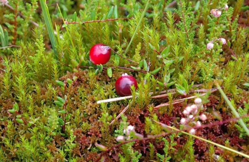 Клюква - мелкий кустарничек с тонкими укореняющимися побегами. У растений клюквы два типа побегов - горизонтальные (вегетативные) и вертикальные (генеративные). Первые имеют длину 20-200 см, вторые - до 15 см. Основной урожай (90-95%) сосредоточен на вертикальных (прямостоячих) побегах. Листья мелкие, длиной 0,7-1,2 см, тёмно-зелёные весной и летом и пурпурные осенью, кожистые, не опадают 2-3 года. Цветки мелкие, собраны в короткие кисти, обычно по 4-6 шт. Окраска венчика от тёмно-розовой до беловато-розовой. Американская клюква в условиях средней полосы цветёт во 2-3-й декаде июня (поэтому весенними заморозками не повреждается), а ягоды созревают в сентябре-октябре. Ягоды округлой, овальной или грушевидной формы, окраска от светло-красной до тёмно-вишнёвой, вкус не такой кислый, как у лесной, размер и вес – в зависимости от сорта. Растения начинают плодоносить на 3-4-й год. Сначала им надо нарастить зелёную массу, чем она пышнее, тем больше цветковых почек и выше урожай. Корневая с