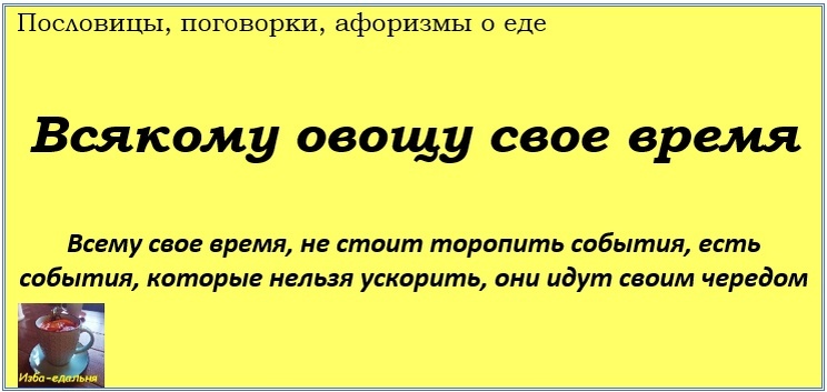 В природе всё подчиняется своим законам. Например, каждый овощ созревает только в определённое время — не раньше и не позже. Так и в жизни — всему свой черёд.