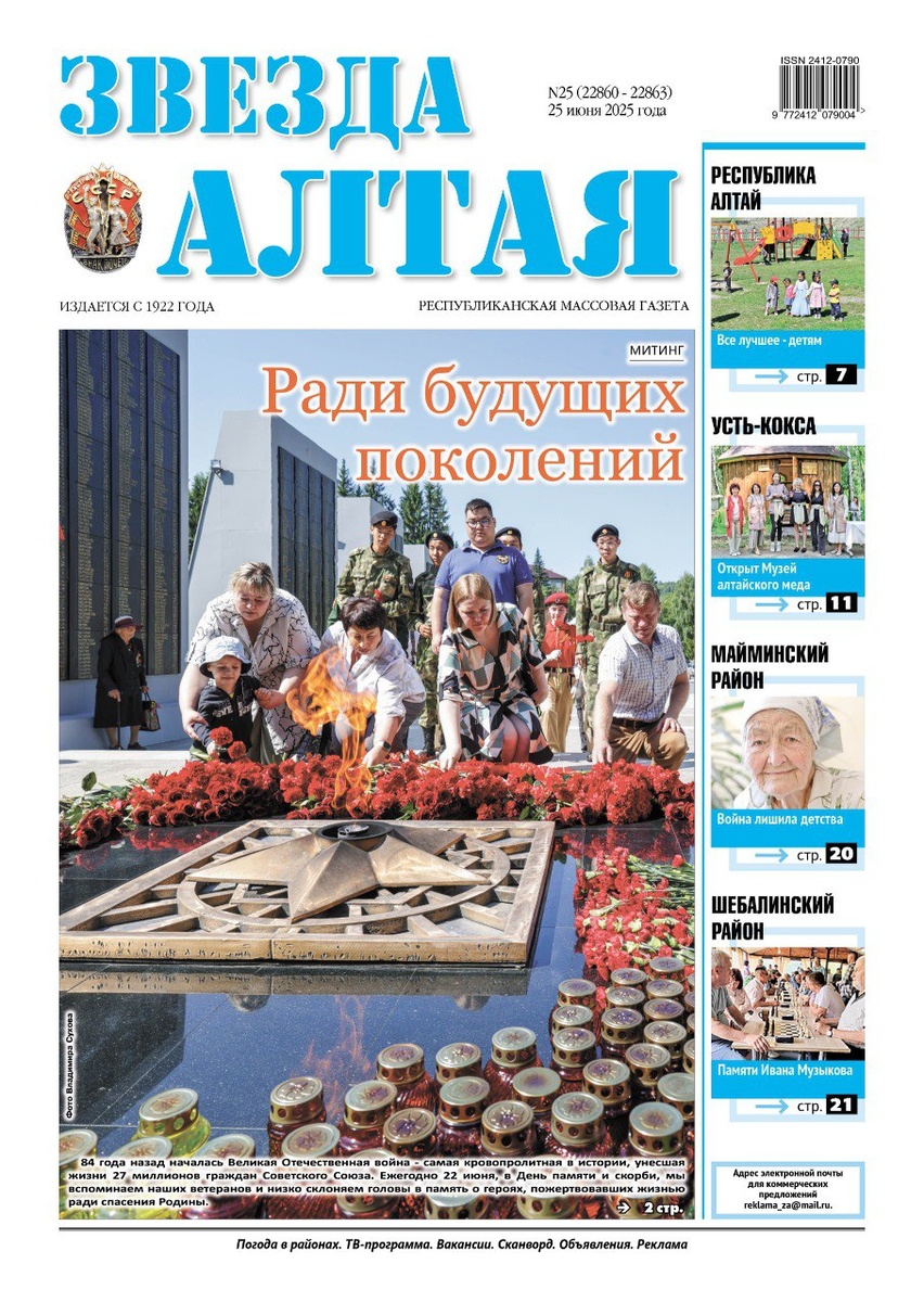 ️😁Свежий номер «Звезды Алтая» уже поступил в продажу! 🔹Рассказываем о проектах, реализованных по инициативе жителей в отдельных селах и микрорайонах города. Как показывает практика последних лет, особое внимание на местах уделяется созданию современных и безопасных зон для досуга и отдыха детей. 🔹Недавно в гостях у "Звезды" побывала Ирина Николаевна Суханова - ветеран, чье детство пришлось на суровые годы войны. Она рассказала о своих проблемах и поделилась уникальными воспоминаниями. 🔹Стальное поколение. О фронтовиках-наставниках вспоминает почетный работник прокуратуры РФ Николай Мылицын. 🔹Научный подход к развитию сельского хозяйства: Горно-Алтайскому НИИСХ исполнилось 95 лет. 🗞️☕В новом выпуске нашей газеты вы найдёте много интересной и актуальной информации! 🔔Спрашивайте газету в магазинах города. Приобрести ее можно и непосредственно в редакции (Горно-Алтайск, ул. Чорос-Гуркина, 38).