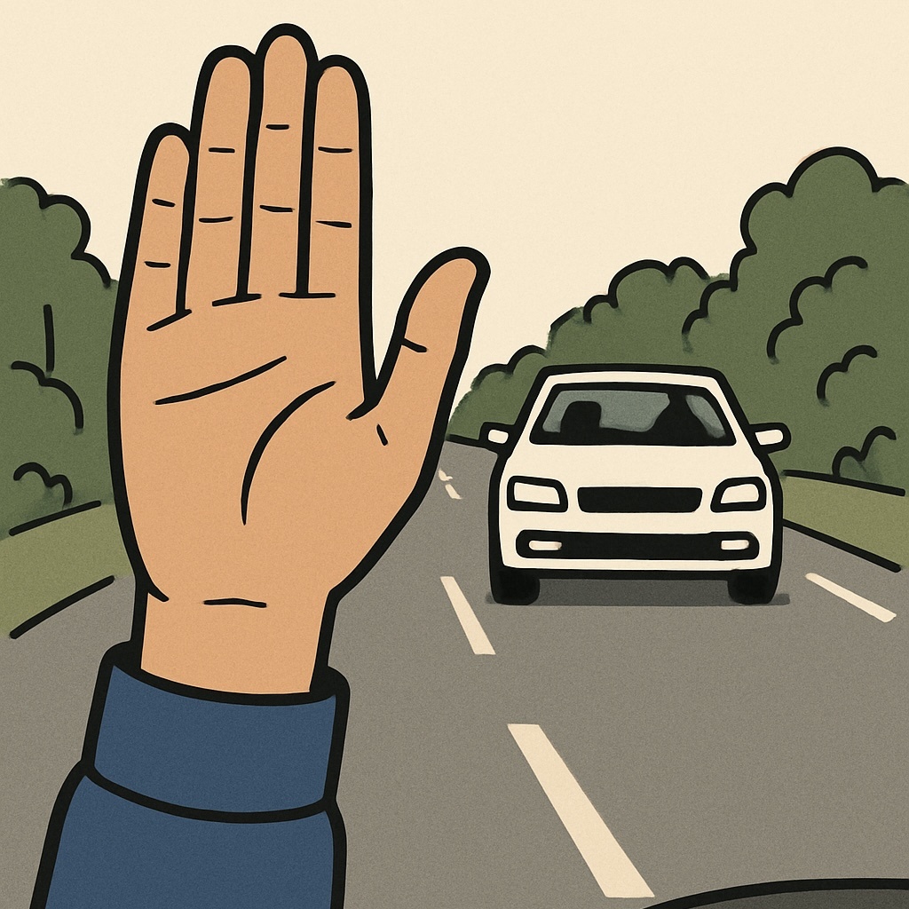 Если водитель поднимает ладонь – он благодарит вас или приветствует.