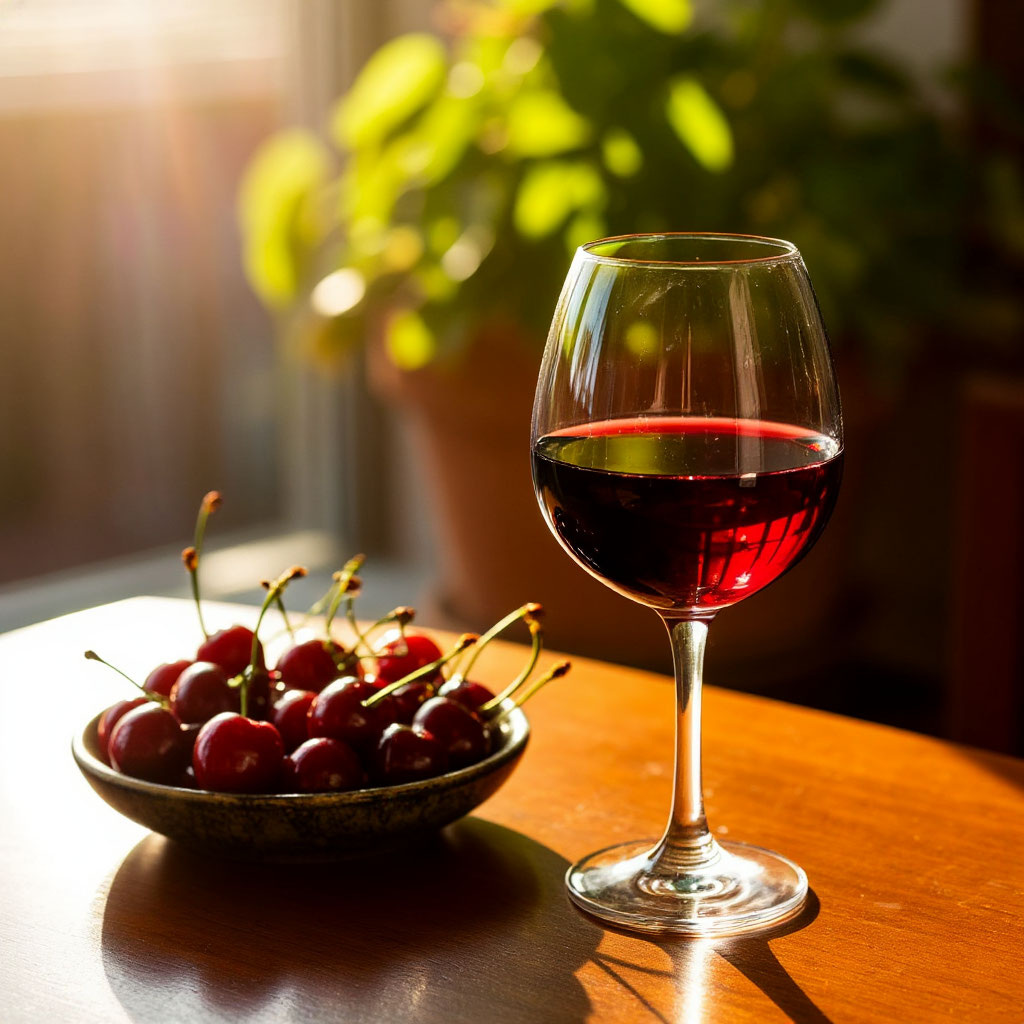 Бокал красного вина — воплощение изысканности и удовольствия Красное вино — напиток, способный раскрыть целую палитру вкусов и ароматов, доставить эстетическое наслаждение и стать достойным дополнением любого застолья. Наполненный гранатовым напитком хрустальный бокал становится символом элегантности и утонченности. ✨ Цвет: Оттенки рубинового, гранатового, пурпурного или бордового цвета подчеркивают красоту напитка, притягивая взгляд и вызывая желание насладиться каждым глотком. 🍇 Аромат: Ароматы красных ягод, шоколада, специй, ванили и дуба создают сложную композицию, раскрывающуюся постепенно, будто приглашая окунуться в мир вкуса и эмоций. 🥂 Вкус: Мягкость танинов, сладость фруктов, кислинка свежести и богатство послевкусия дарят незабываемые ощущения, позволяя оценить мастерство винодела и особенности терруара. 🌾 Польза: Умеренное потребление качественного красного вина положительно влияет на здоровье сердечно-сосудистой системы благодаря наличию антиоксидантов и полифенолов. Б