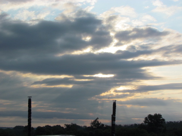 Встретили кровиночек, чемодан дед еле запер в вагон, ручками помахали и в машину. Температура уже опустилась к +10. Едем, а туман клубами по дороге стелется, выходя из низин и впадин. Запах непередаваемый - болотом и вокзалом... Бр-р-р... Попыталась фотографии на ходу сделать, не очень получилось...