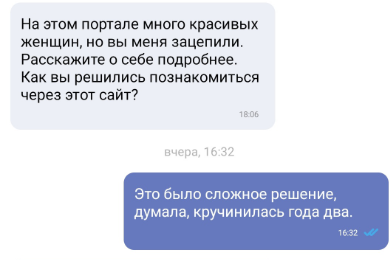 Мужчины, кстати, пишут. Всё однотипно и предсказуемо, а я ждала его, если честно. На сайте знакомств бывают разные интересные персонажи, про которых можно что-то написать. Именно с такой целью и заходила на сайт.