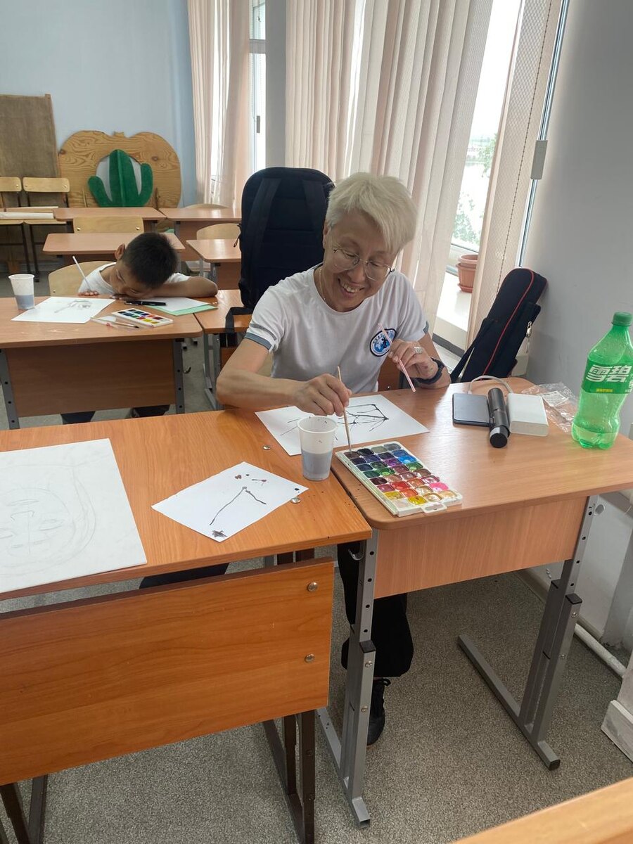 День 5 в лагере ушу Ойской школы. Сегодня было всё: пот, усердие и... неожиданно — творческий бунт! После многочасовых тренировок мы вдруг сменили боевые стойки на кисти и акварель, а нашим командиром в этом художественном десанте стала учитель ИЗО Туйара Геннадиевна. И вот мы, привыкшие к железной дисциплине ушу, вдруг превратились в банду акварельных анархистов! Знаете, как мы рисовали сакуру🌸? Никаких скучных контуров — только капля краски и мощный выдох через трубочку 🌬️💨 (как будто дули на воображаемый суп, только в 10 раз азартнее). Краска послушно разбежалась по листу, создавая причудливые ветки — оставалось лишь добавить розовые цветы, что мы и сделали с трепетом новичков (и тайной гордостью). Каждая сакура получилась уникальной — как отпечаток души. У кого-то цветы были нежные, как первый снег, у кого-то — яркие, как закат. А Туйара Геннадиевна мудро направляла этот творческий хаос, будто мастер тайцзи, превращая наши кляксы в искусство. Открытие дня: оказывается, я умею
