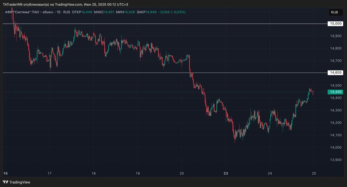 🧠 Интересно все получается… ✅ Практически всю вчерашнюю торговую сессию индекс стоял в боковике и показывал слабость, так как НЕ закрыл свой утренний гэп до конца. Но тут вдруг пришла вечерняя, низколиквидная торговая сессия, где вдруг появилась какая то сила, на которой начали разгонять инструменты, да так, что открытие основной торговой сессии сегодня планируется с гэпом вверх. 👉 При условии вчерашней слабости + открытии с гэпом вверх, лонговать сегодня, на открытии НЕ стану. Буду искать точку входа в шорт, на локальный откат. По индексу жду отката в сторону 2740 сегодня, а дальше посмотрим по факту. Один из инструментов, с кем буду работать: $AFKS Планирую присмотреть шорт на отскок от 14,6. (Вход могу взять в диапазоне 14,54 - 14,6) ❗️ Стоп поставлю 0,5%. Тейк +1-1,5% При достижении +0,5% поставлю стоп в без убыток. Желательно, чтобы акция пришла первичным движением к уровню сопротивления! НЕ призыв к действию! Больше идей в Базе. ВНИМАНИЕ!!! Это условия торговли, то есть ЕС