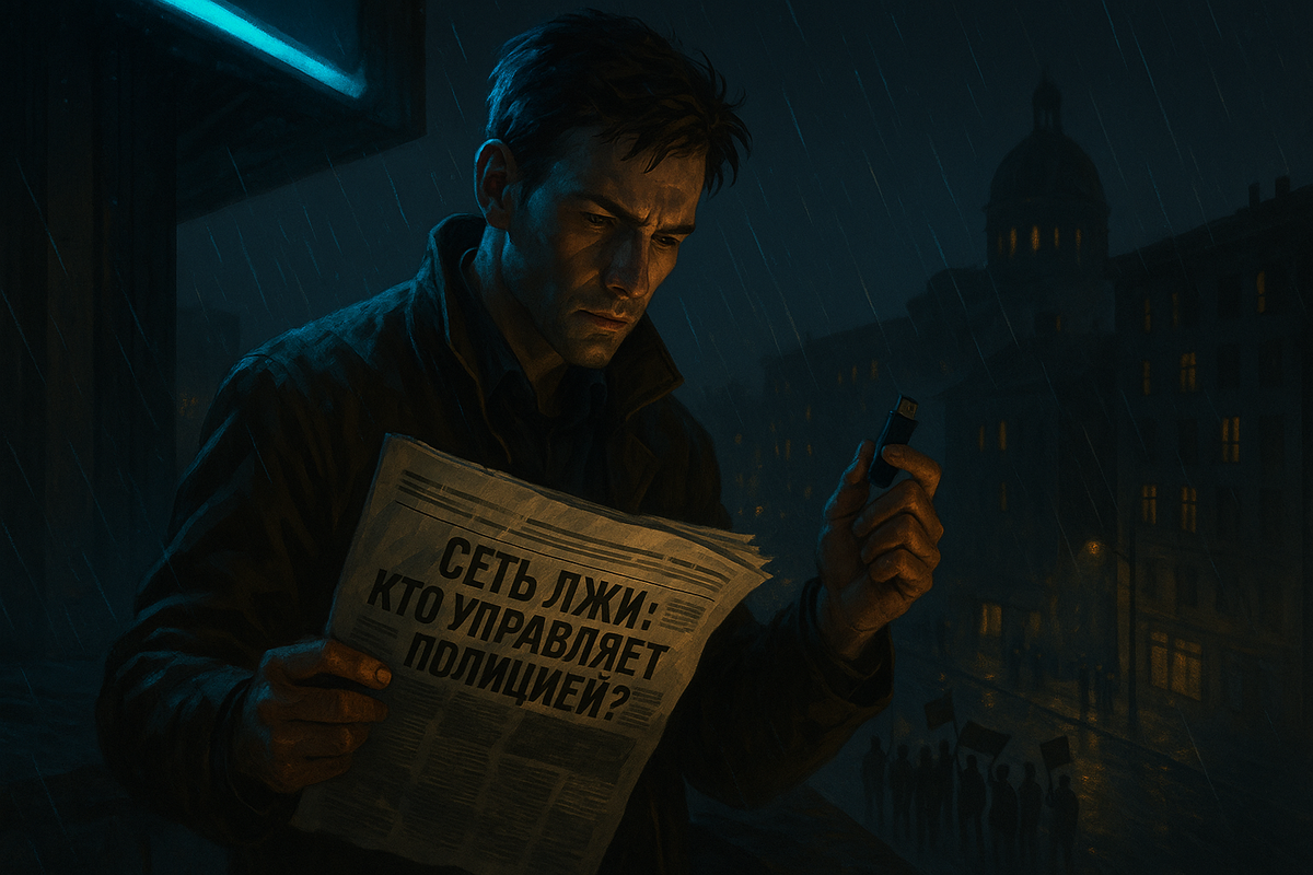 1. Пролог: Молчание города. Ночной город жил своей жизнью — суетливой, беспокойной, прячущей правду под слоем шума и света. Рекламные щиты отражались в лужах, прохожие шли с опущенными головами, а в сером здании, затерянном среди деловых центров, не гас свет. Офис газеты "Голос улиц" жил вопреки — не по правилам медиарынка, а по зову совести. Артём, молодой журналист с живыми глазами и вечной тетрадью в рюкзаке, сидел у монитора. Его рука дрожала, сжимая маленькую флешку. Инстинкт подсказывал — это не просто материал. Это взрыв. Он вставил флешку в порт, открыл содержимое: видеозаписи допросов, разговоров, банковские документы, схемы. Имя капитана полиции Иванова встречалось чаще других. Его голос, его приказы, его подписи. Всё было в одном досье. Слишком много для простого совпадения. Слишком опасно, чтобы проигнорировать. — Ты уверен, что хочешь этим заниматься? — спросил Саша, редактор, человек с мешками под глазами и сигаретой, которая всегда дымилась, даже если не горела. Артём не