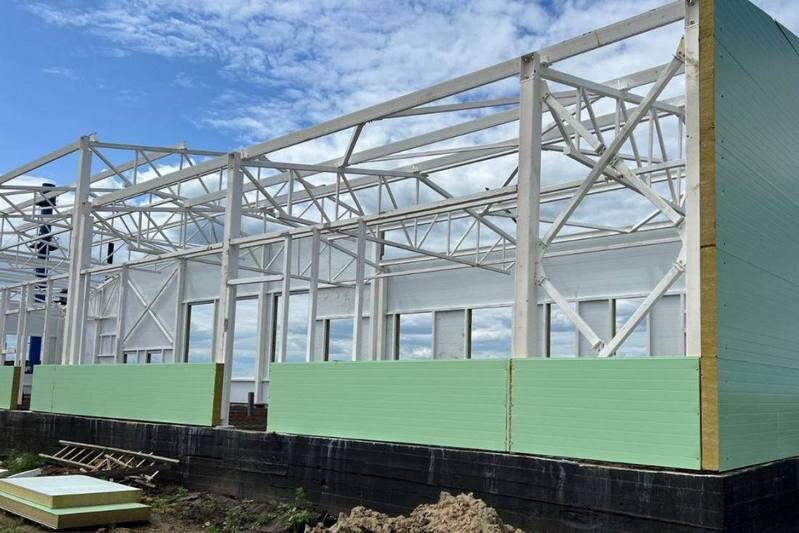 «В селе Боровском Белозерского округа строители собирают каркас модульного здания, рассчитанного на 150 мест. Попросили подрядчика ускориться. Рядом со школой подарим ребятишкам мини-стадион.