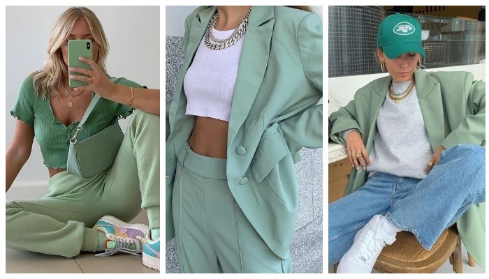Объемный пиджак мятного оттенка — это лучшее приобретение, которое только может быть в летнее время года. Стилисты советуют комбинировать его с классическим брюками, топами, джинсами, футболками, а также комфортным кедами или кроссовками.