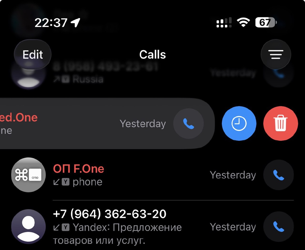 Во второй бете iOS 26 свайпом справа налево можно быстренько включить напоминание о том, что нужно кому-то перезвонить через некоторое время.