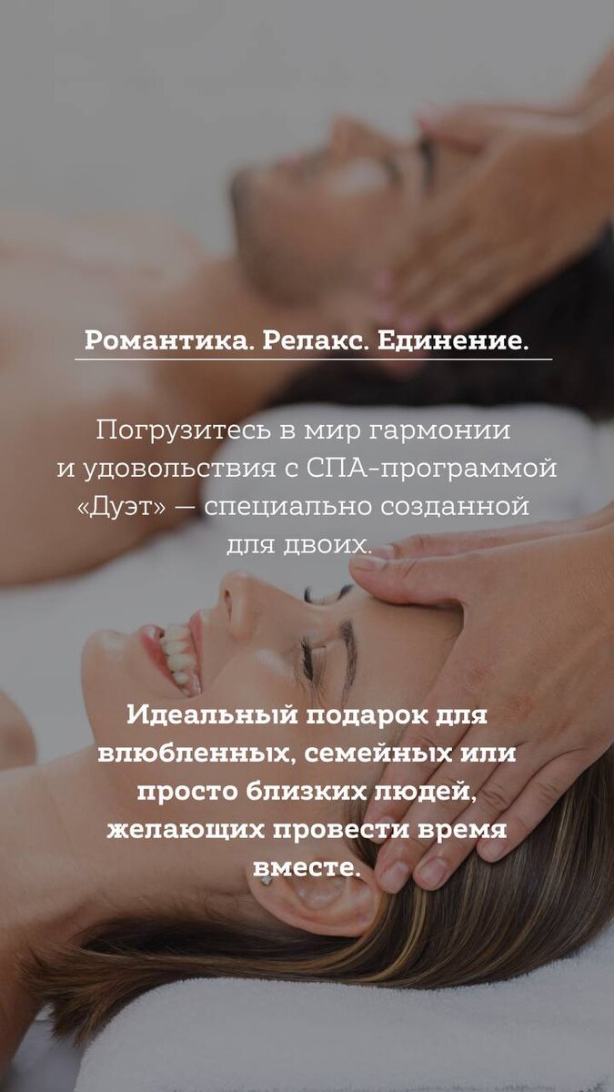 🌹 Мы нашли идеальное решение. СПА-программа «Дуэт» — ваш шанс быть рядом, расслабиться, наполнить энергией и создать воспоминания, согретые заботой друг о друге.