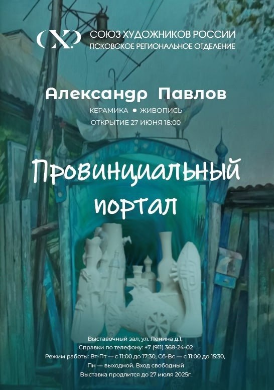 Выставка керамики и живописи Александра Павлова 🎨 📌 «Александр Павлов — выдающийся художник, чьи работы пронизаны глубиной и выразительностью. Его керамические изделия и живописные полотна воссоздают атмосферу провинциального быта, полную тепла и уюта. Выставка "Провинциальный портал" станет настоящим откровением для ценителей искусства», - анонс. 📆 Открытие 27 июня в 18.00. 🎟 Вход свободный. 📍 Псков, улица Ленина, 1 телефон 72-76-71 Оставайтесь с нами #НашаПсковскаяобласть #выставка