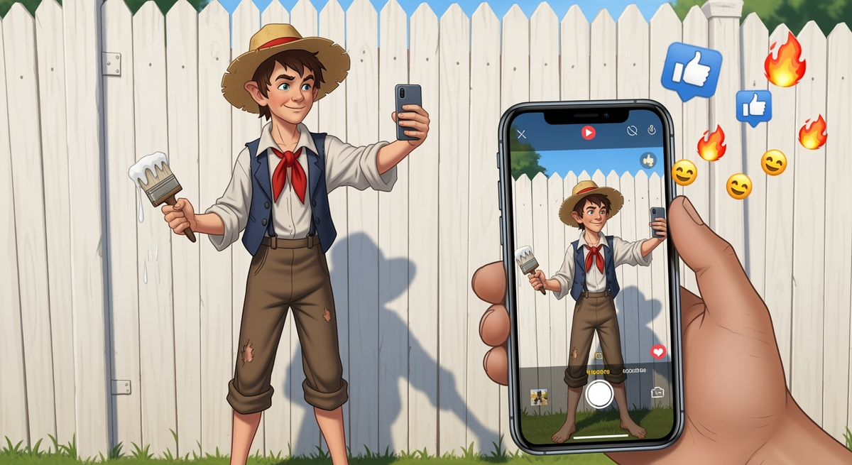 Рубрика: #КлассикаRELOAD Листаешь ленту, а там — очередной челлендж, пранк или «социальный эксперимент». Блогеры соревнуются в изобретательности: кто-то живет 24 часа в картонной коробке, кто-то разыгрывает друзей, заставляя их поверить в нашествие инопланетян. Кажется, что это герои нашего времени, мастера контента и повелители лайков. А что, если мы скажем, что главный пранкер, тролль и мастер вирусного маркетинга жил задолго до изобретения интернета? Ему не нужен был смартфон и монтаж, чтобы собрать вокруг себя толпу и заставить всех говорить только о нем. Его звали Том Сойер. И да, этот парень из «скучной» школьной программы мог бы дать фору любому современному миллионнику. Давайте на секунду представим, что Том живет сегодня. Снимем с него соломенную шляпу и рваные штаны, дадим в руки телефон и посмотрим, какой контент он бы создавал. Челлендж «Покрась забор». Помните тот легендарный эпизод? Тетя Полли заставляет Тома белить бесконечный забор — скучнейшее наказание. Что делает обы