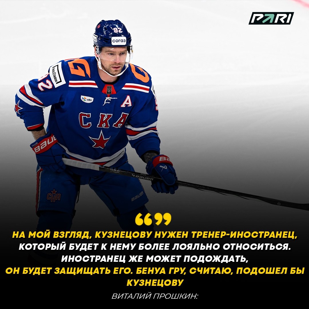 🔥🇷🇺 Виталий Прошкин считает, что Евгению Кузнецову нужен иностранный тренер. 🤝 Ранее СКА расторг контракт с форвардом по обоюдному согласию. 🚨 В сезоне-2024/25 на счету Кузнецова 37 (12+25) очков в 39 матчах регулярного Чемпионата КХЛ. В 6 играх плей-офф он набрал 3 (1+2) балла. 🚜 Кузнецов является воспитанником «Трактора», который возглавляет канадец Бенуа Гру. ❤️💥😎 Фрибет 5х1000