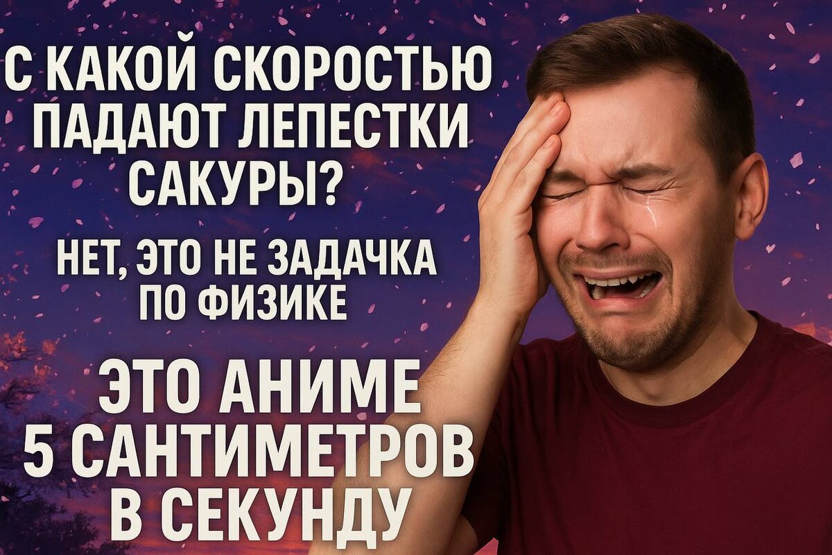 С какой скоростью падают лепестки сакуры? Нет, это не вопрос по физике из ЕГЭ. Это аниме, которое вышло почти 20 лет назад, но до сих пор является одним из самых визуально красивейших аниме от самого депрессивного романтика Японии - Макото Синкая. А теперь к делу. Что это вообще такое? Это как будто кто-то взял первую любовь, заварил её в японском чайнике, добавил поезда, туманы, облака, и подал в красивом бокале из 2007-го (о! можно пересмотреть и вернуть 2007ой, хотя бы ненадолго.. а говорили нельзя!) Сюжет довольно простой на первый взгляд - школьники, чувства, расстояние, письма, грусть.. Но под этой кажущейся простотой лежит целая симфония чувств и переживаний, облачённых в невероятную детализацию, ведь.. ..чувств и визуал - вот, что главное в этой картине! Макото Синкай - это тот самый человек, который с фанатичной дотошностью рисует каждый облачко, каждый чайник на плите, каждую каплю дождя, но… у него явно личные счёты с лицами персонажей. Лица нарисованы наоборот достаточно пр
