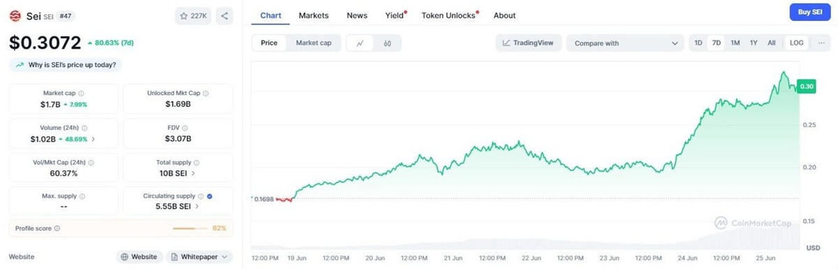 Sei за неделю прибавила 80%, перед пампом монетой закупились семья Трампа через World Liberty на $1 млн