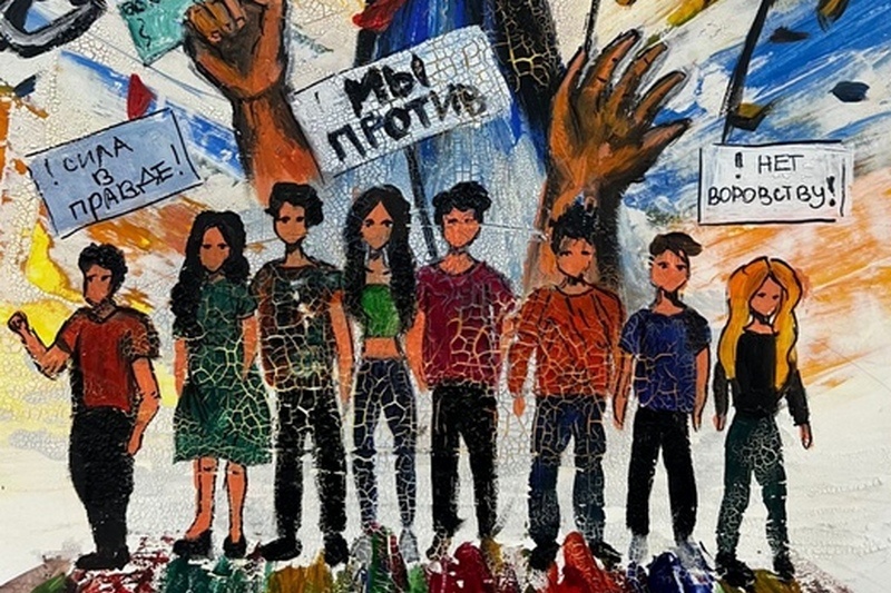 Так, рисунок Адель Аскаровой «Молодёжь против коррупции» напоминает о том, что будущее в наших руках, и что каждый может внести свой вклад в создание более честного и справедливого общества. Картина передаёт ощущение борьбы и надежды, призывает молодёжь активно участвовать в общественной жизни и бороться за справедливость. А кулак символизирует силу и решительность молодого поколения.
