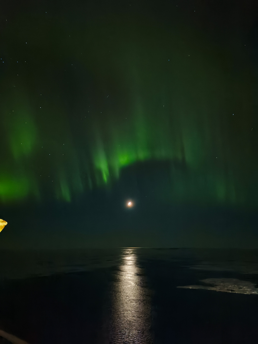 Рабочая атмосфера в Антарктиде выглядит немного иначе, чем мы привыкли. Здесь вместо офисного окна — бескрайние льды, вместо шумных улиц — полная тишина и холодный ветер. А над головой — редкое южное сияние, которое невозможно спутать ни с чем. Оно мягче и плавнее северного, но не менее завораживающее. В тот вечер над станцией ещё и яркая луна висела почти у самого горизонта — низко, будто кто-то положил её на лёд. Такие моменты не запланируешь. Ты просто выходишь на пару минут из каюты и вдруг оказываешься внутри кадра, который раньше видел только на фотографиях National Geographic. А потом возвращаешься к обычной работе: проверке оборудования, записи данных, выгрузке проб. И кажется, что всё это — сон, но ты в нём живёшь. От Москвы до Антарктиды — чуть больше 12 тысяч километров. Не ближний свет, конечно. Но если когда-нибудь выпадет шанс — он того стоит.