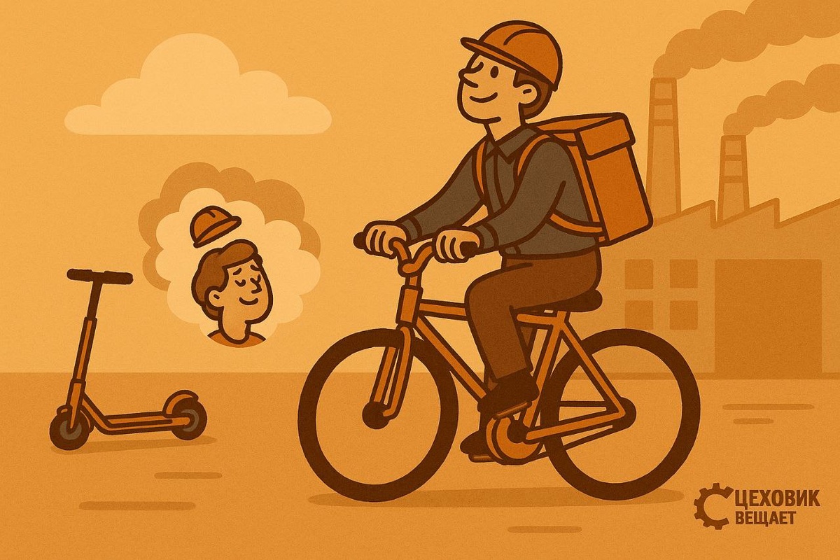 Если ты сменил самокат на велосипед — это курьерный рост. #Индустриальный_юмор Цеховик вещает