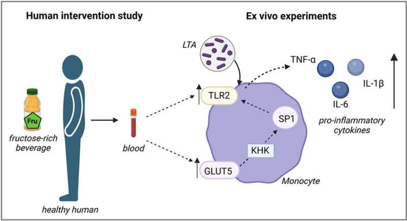 Raphaela Staltner et al, Fructose intake enhances lipoteichoic acid-mediated immune response in monocytes of healthy humans, Redox Biology (2025). DOI: 10.1016/j.redox.2025.103729