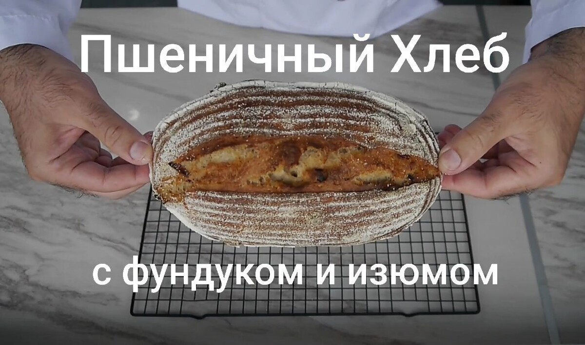 Рецепт Закваска 8 гр пшеничной закваски 100% влажности 80 гр воды 80 гр пшеничной муки в/с Тесто Вся закваска 160 гр пшеничной цельнозерновой муки 80 гр пшеничной муки в/с 155 гр воды 6 гр соли 10 гр мёда 50 гр изюма 50 гр обжаренного фундука Добавьте к пшеничной закваске нужное количество воды и муки, перемешайте до однородной массы, накройте пленкой и оставьте при комнатной температуре на 8-10 часов до полного созревания. После созревания закваски начинаем готовить тесто. В ёмкость добавляем все ингредиенты кроме фундука (обжарьте его в духовке на противне при температуре 190 градусов где-то 10-12 минут, 2-3 раза помешивая, после того как остынет потрите ладонями, чтобы сошла шелуха) и изюма. Я замешивал в своем планетарном миксере сначала 3 минуты на 1-й скорости, далее переключил на 2-ю скорость и замешивал ещё 4 минуты. Пришлось добавить 10-15 гр воды, так как тесто было немного плотноватое. Далее переключил снова на 1-ю скорость, добавил фундук и изюм и замешивал пар