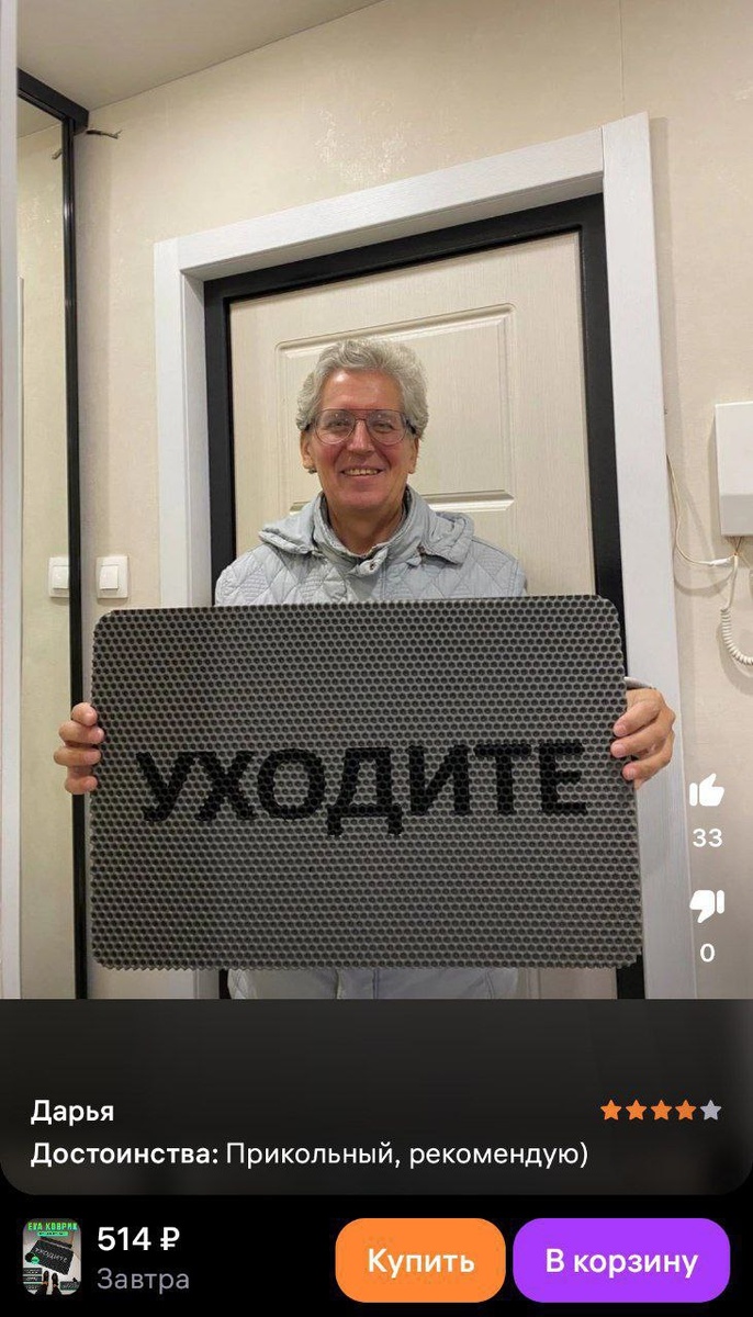Коврик 'Уходите' — потому что 'Хватит есть мои пельмени' было слишком длинно