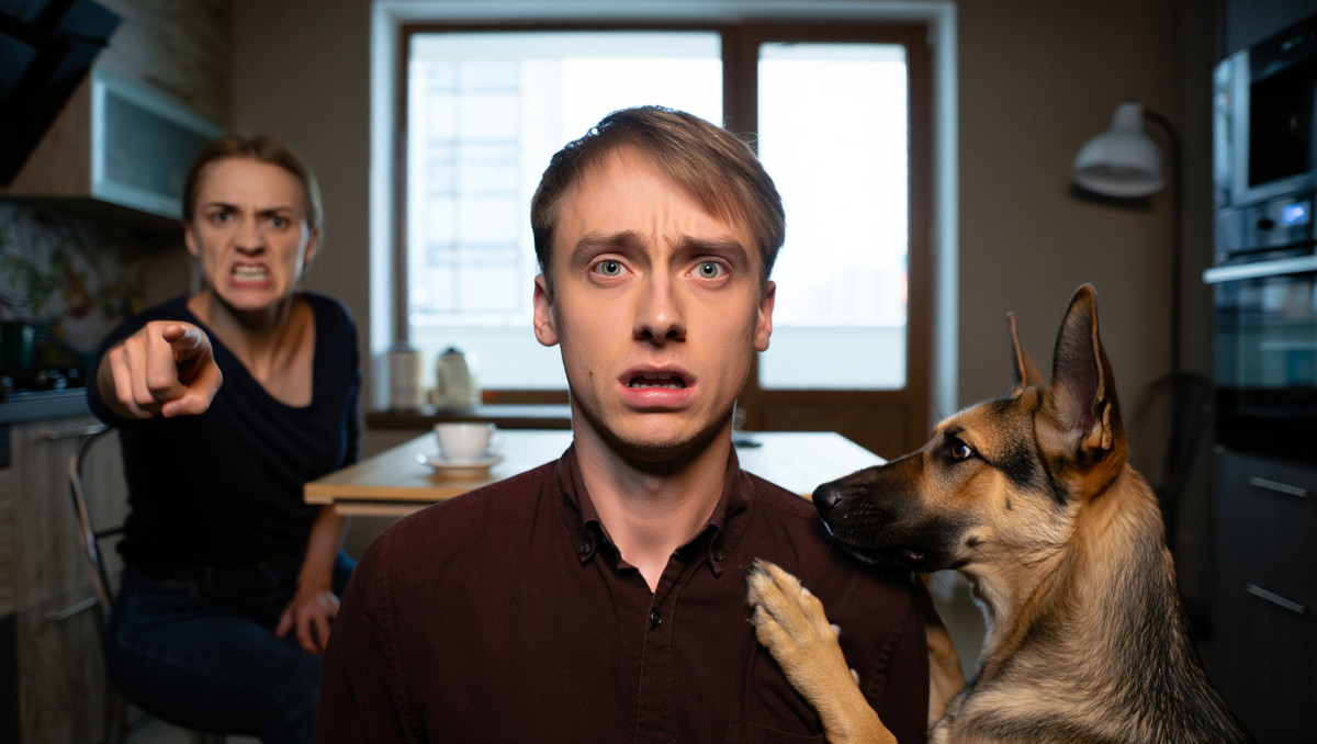 – Меня напрягает то, что я для тебя на втором месте после собаки, понял? Меня бесит, что мы не можем в отпуск поехать, потому что твою псину не с кем оставить! Меня трясёт от того, что каждый раз, когда я прихожу домой, эта зверюга прыгает на меня своими грязными лапами!