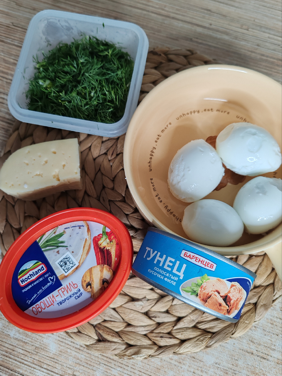 Яйца размещаем вылкой, добавляем Тунец (лишнюю жидкость сливаем)