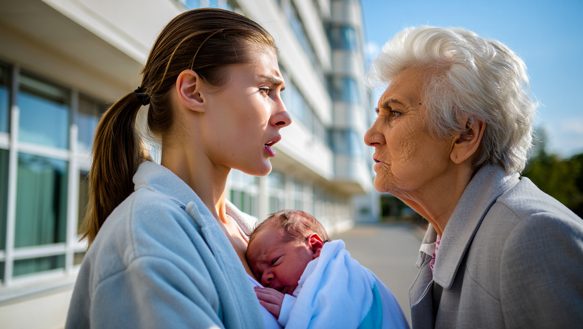 Недавно родившая Надежда почувствовала, как ноги подкашиваются. Санитарка, выносившая следом вещи, бросила встревоженный взгляд, заметив разгорающийся конфликт.