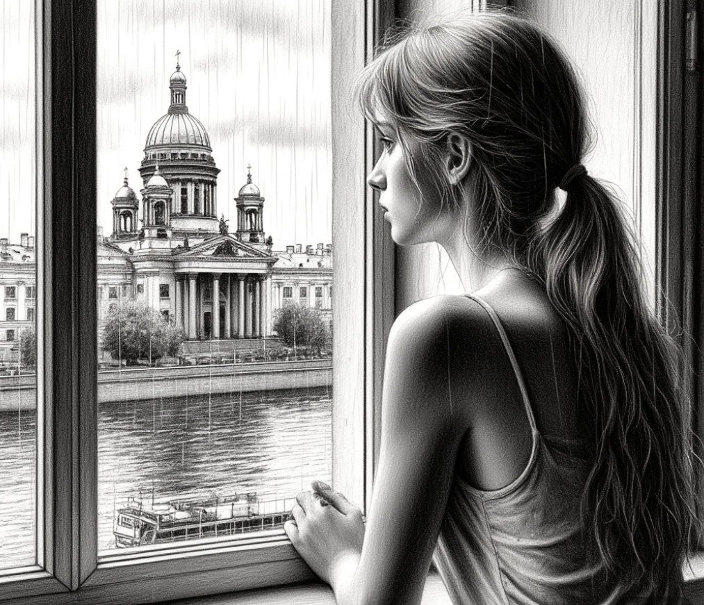 Который день в Питере дождь за окном, и на её душе так грустно. Капли стучат по стеклу, словно кто-то невидимый рассказывает печальную историю этого города.