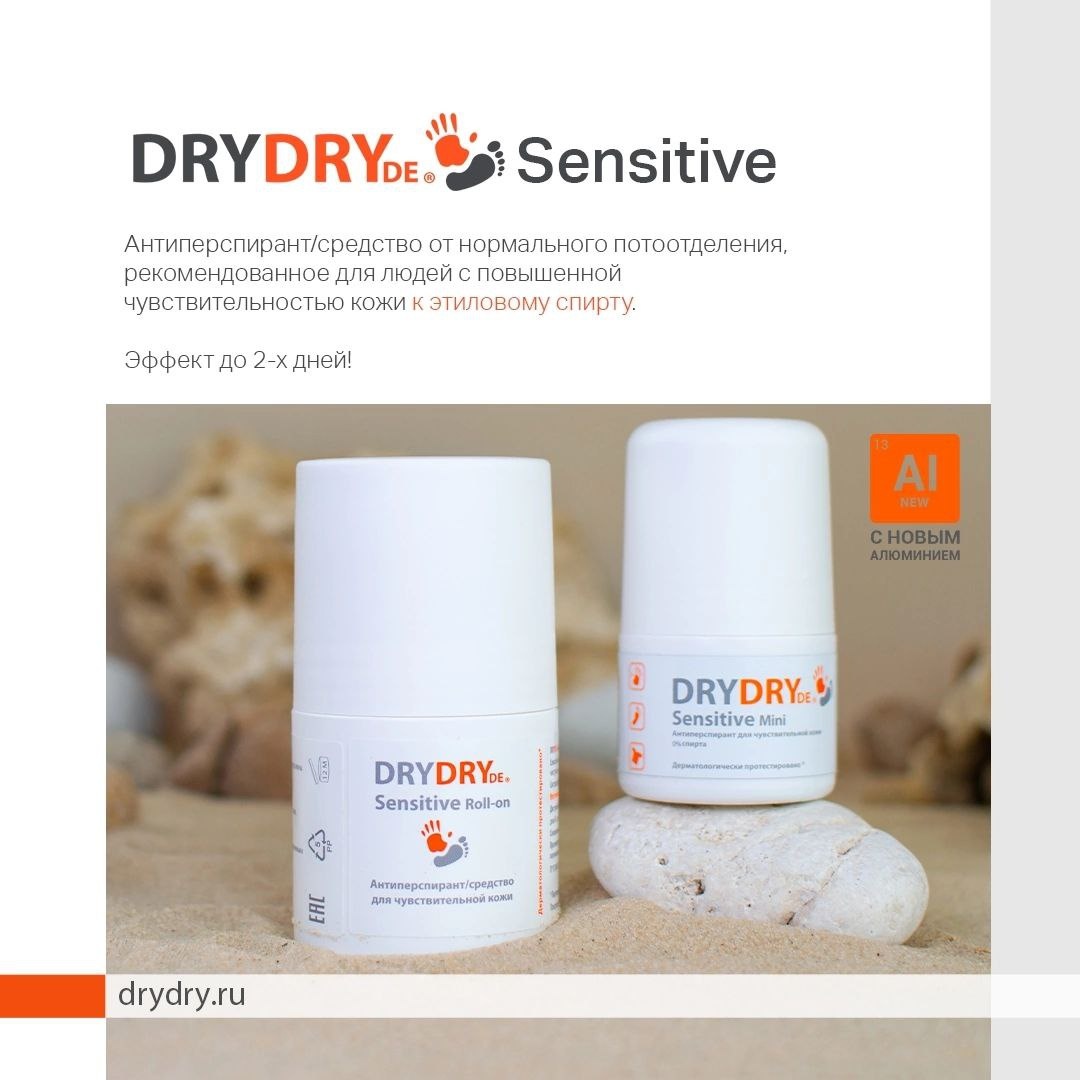 Зная об этой проблеме, ТМ DRYDRY создала антиперспирант DRYDRYde Sensitive, в составе которого нет этилового спирта. Он помогает бороться с умеренным потоотделением, не нарушая функцию потовых желез, а ещё DRYDRY Sensitive: