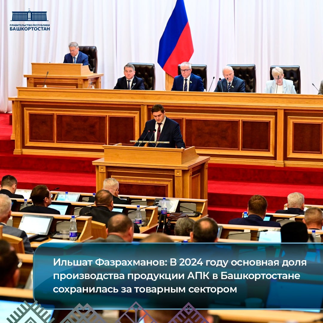 В 2024 году основная доля производства продукции АПК в Башкортостане сохранилась за товарным сектором ⬆️ 24 июня в Уфе состоялось заседание Госсобрания, где заместитель Премьер-министра Правительства Республики Башкортостан – министр сельского хозяйства РБ Ильшат Фазрахманов отметил, что по итогам 2024 года объем производства валовой продукции сельского хозяйства составил 252 млрд рублей, это 9 место в России. Основная доля сохранилась за товарным сектором и составила порядка 58%. ⭐️ Агропромышленный комплекс республики уверенно сохраняет позиции, растет за счет инвестиций, модернизации и расширения экспорта. Продолжается системная поддержка как предприятий, так и кадрового потенциала отрасли. ➡️Основные итоги реализации Государственной программы развития сельского хозяйства и регулирования рынков сельскохозяйственной продукции, сырья и продовольствия за 2024 год — на нашем сайте.