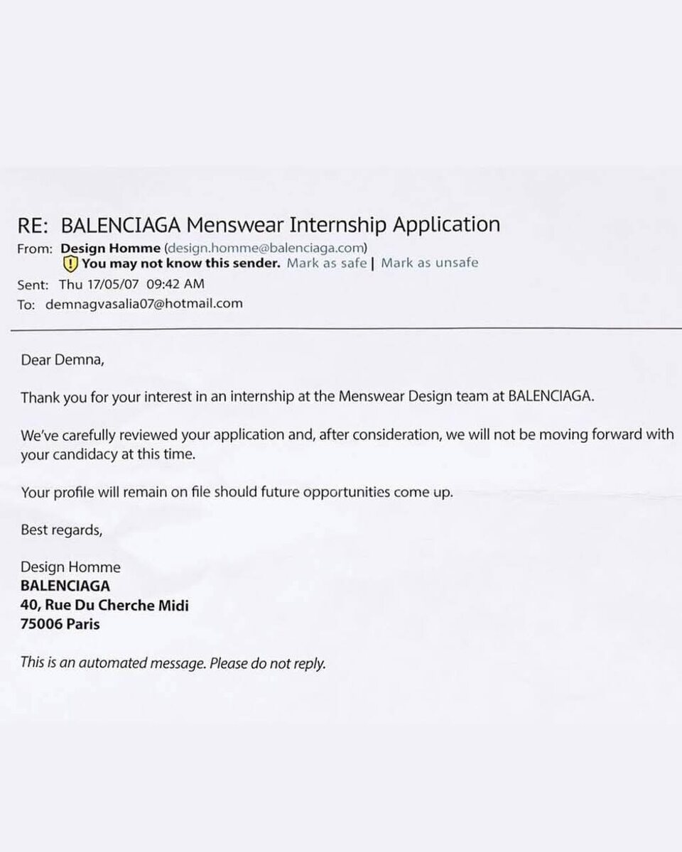 Оказывается, в 2007 году Демне Гвасалия отказали в стажировке в Balenciaga.