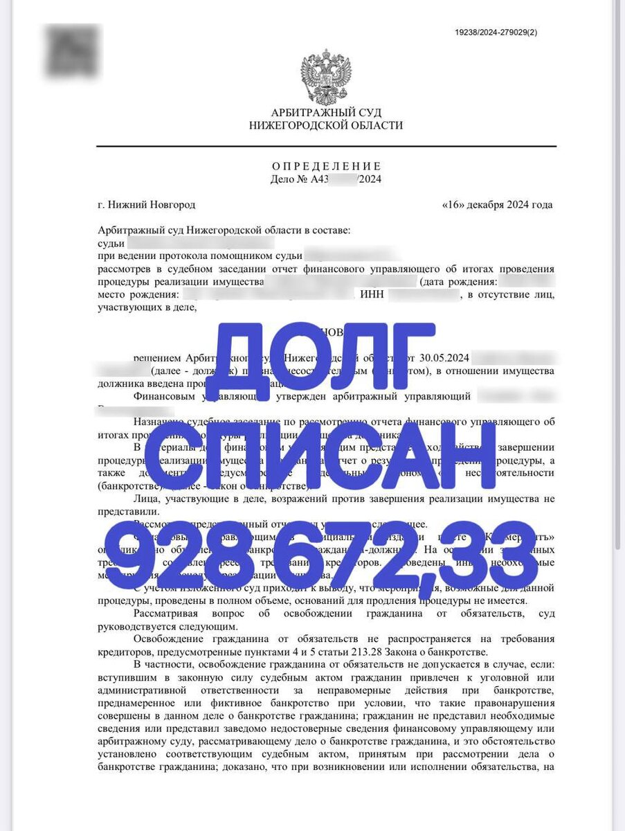 📜 7 месяцев спустя: суд освободил Илью от долгов. Полностью.