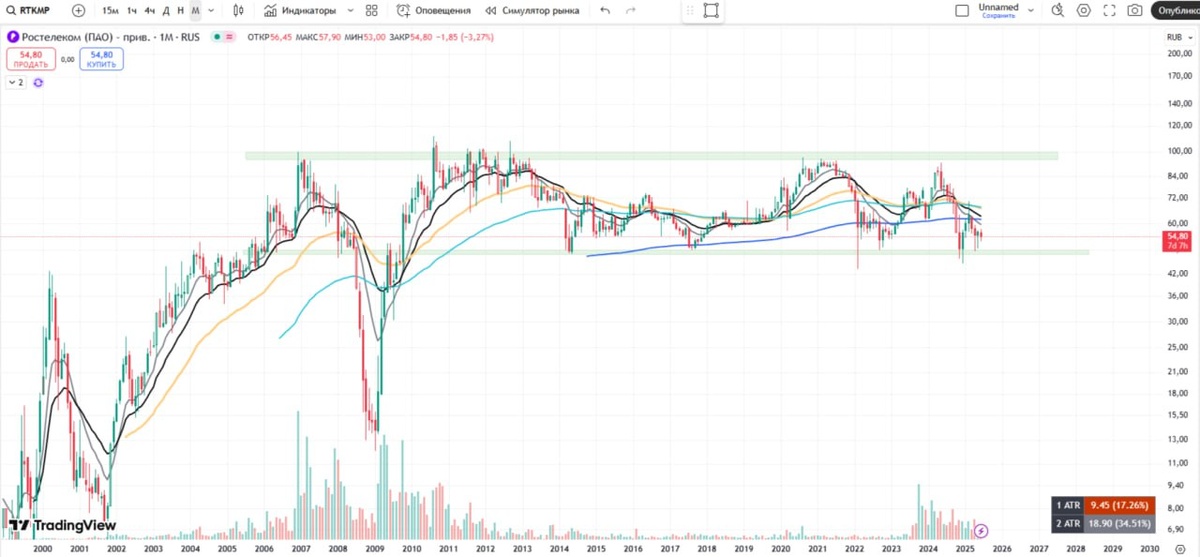 🇷🇺Ростелеком. Что по дивидендам? СД Ростелекома дал рекомендации по выплате дивидендов на 2024 год. По привилегированным акциям выплата в размере 6,25 рубля (11,5% ДД) на одну акцию. По обыкновенным акциям в размере 2,71 рубля (5,1% ДД) на одну акцию. С учетом новой дивидендной политики, по префам вполне ожидаемо. Таким образом, при выборе покупки акций Ростелекома, префы $RTKMP выглядят более интересней. Учитывая текущий уровень долга (2,3х) и ситуацию в экономике, компания интересна под определенные драйверы. Напомним еще раз: 🟩Снижение ставки. Пока высокая ставка давит процентными расходами на прибыль, а доходность дивидендов за 2025 год может оставаться под вопросом. Однако, при снижении ставок эта неопределенность будет существенно ниже, а долг комфортнее. 🟩IPO дочек. Будущий драйвер роста после снижения ставок, это выход довольно успешных дочек на фондовый рынок. Солар и РТК-ЦОД уже сейчас готовы выйти на IPO, но компания ждет около 10% ставку от ЦБ. На наш взгляд, выйти