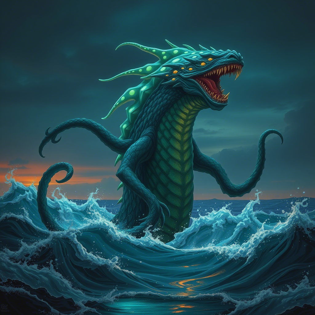 "Тайна Зелёного Желоба" В самом сердце Тихого океана, там, где солнечные лучи не достигают дна и давление способно раздавить сталь, существует место, известное лишь горстке учёных — Зелёный Желоб. Это самая глубокая точка на планете, но не только из-за глубины он знаменит. Говорят, в его тёмных водах обитает монстр, чьё имя давно забыто временем. Его называют Уйр’зар, или "Глотатель Света". Согласно древним легендам народов Микронезии, Уйр’зар был наказан богами за то, что пожрал слишком много света и начал поглощать души моряков. Боги спрятали его в самой глубокой трещине океана, заперев цепями из водорослей и песка. Но они предупредили: если человек попытается достичь самых больших глубин, Уйр’зар проснётся. И вот, в 2025 году международная исследовательская подводная станция "Аквилон-7" была отправлена к Зелёному Желобу для картографирования дна и поиска новых форм жизни. Экипаж состоял из шести человек — лучших океанологов мира. В числе прочего, среди них находилась и молодая
