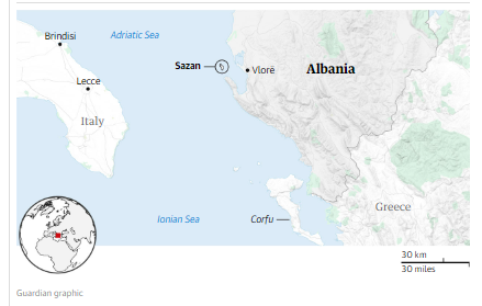 Сазан находится между Адриатическим и Ионическим морями, стратегически расположенный у входа в залив Влёра, в проливе Отранто, который отделяет Италию от Албании. Но, как объяснили нам здесь, «климат Сазана не средиземноморский, а субтропический. Вы можете видеть это по растительности. Биоразнообразие здесь просто безумное». Действительно, кусты, казалось, вышли из компьютера Спилберга, породив джунгли колоссальных ясеней, грабов, приморских сосен и каменных дубов.