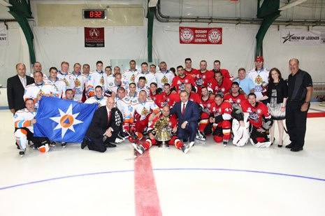 ↗ 📍25 июня 2013 года в Нью-Йорке в рамках фестиваля «Наше наследие» объединенная сборная пожарных Нью-Йорка, Бостона, Заречного и Сарова встретилась с командой легенд советского и российского хоккея. В составе профессионалов были такие именитые спортсмены, как Павел Буре, Алексей Яшин и Александр Якушев, которые и выиграли со счетом 13:5. Фото: www.veteranysporta.com