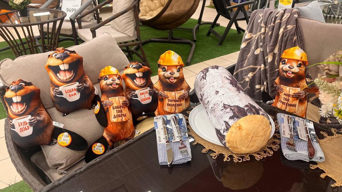 Интересновое, в О'КЕЙ были замечены бобры, сидящие за столом. Они явно отдыхают после тяжелого дня и точат полено.