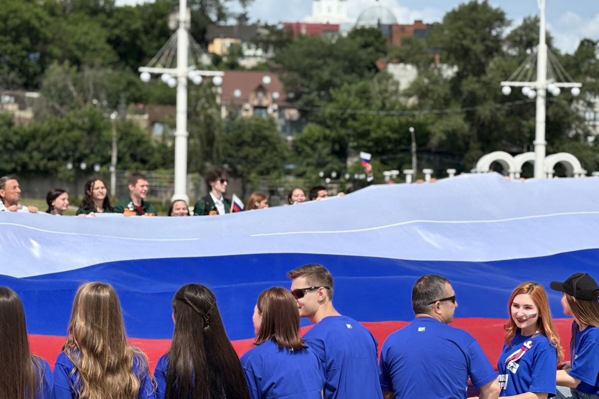В рамках акции более 70 активистов «Молодой Гвардии Единой России», общественники, студенты воронежских вузов и жители города развернули 100-метровый триколор.