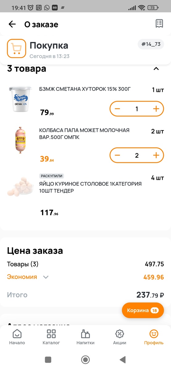 Вот все ж таки нельзя мне никакие экономные марафоны затевать, много раз уже это говорила. Как только задумаешь что-нибудь подобное, так обязательно всякие нужные продукты по очень приятным ценам появляются. И как не купить? Вот, например, яйца по 29 рублей? Или котлеты по 55? Аж два раза на дню в "Дикси" заходила. Обратите внимание на стоимость колбасы на верхнем скриншоте - это я так удачно баллы кешбека списала 😏 "Вкусс вилл" в последнее время тоже радует зелеными ценниками, обычно мне попадается лишь готовая еда и хлебобулочные изделия. А тут мясо по привлекательной цене! Учитывая, что мы индейку любим, а цены на нее в последнее время поднялись практически до уровня говядины, я не могла не оформить заказ. Итого вечером понедельника у меня из выделенных 10000 осталось лишь 1180 рублей 😱 Ну почему деньги имеют свойство так быстро заканчиваться?!🙄 Питание было более сдержанное, чем траты))) На завтрак мультизлаковая каша На обед гороховый суп На ужин голубцы ленивые На переку