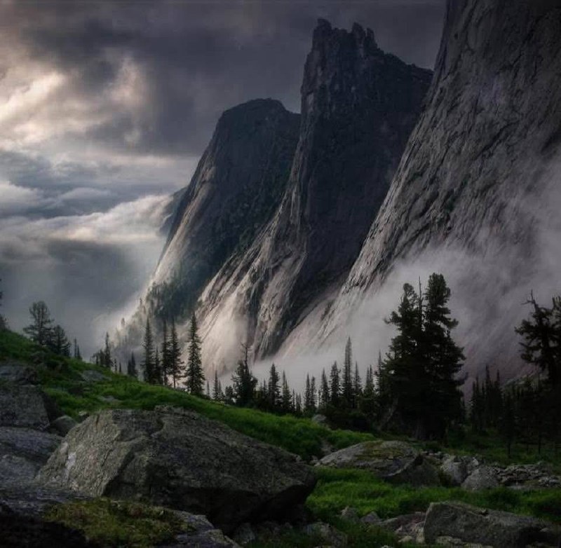 Красноярский край, Ергаки Вид на скалы Сфинкс, Страж и Тугодум