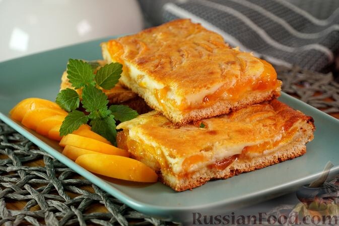 Абрикосовый пирог со сливочной заливкой. Основа пирога – песочное тесто, на которое выкладываются ломтики абрикосов. Заливка на основе сливок и яиц соединяет всё в единое целое. Абрикосовый джем, которым смазывается тесто, делает вкус пирога ещё ярче.