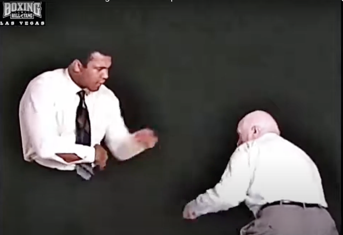 В начале 1970-х, когда Мухаммед Али вернулся в бокс после трехлетнего запрета и готовился к новым вершинам, он встретился с не менее значимой фигурой в боксе - Касом Д’Амат, тренером Майка Тайсона. Прямо сейчас Вы можете подписаться на нас в Телеграм: Их встреча превратилась в неформальную тренировку, на которой они успели обсудить нюансы боя, его ритм и манеру, а также поспорить, чей стиль окажется эффективнее в бою. В результате эта полемика переросла в легкий, дружеский спарринг, который вошел в документальный фильм AKA Cassius Clay. В этом видео Али легко двигается, выбрасывает джебы, а Кас уверенно уклоняется, пробивает по корпусу, а затем переводит на голову и попадает Али по бороде. На этом спарринг заканчивается. Видео в Телеграм: Многие считают, что эта встреча оказала влияние на Али, особенно на его стратегию в бою с Джорджем Форманом. Известно, что Али звонил Д’Амато перед боем и спрашивал совета.